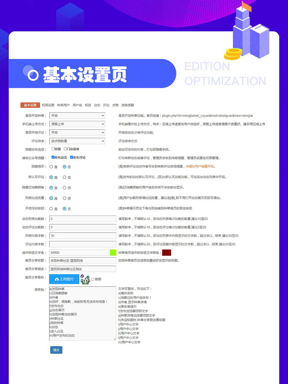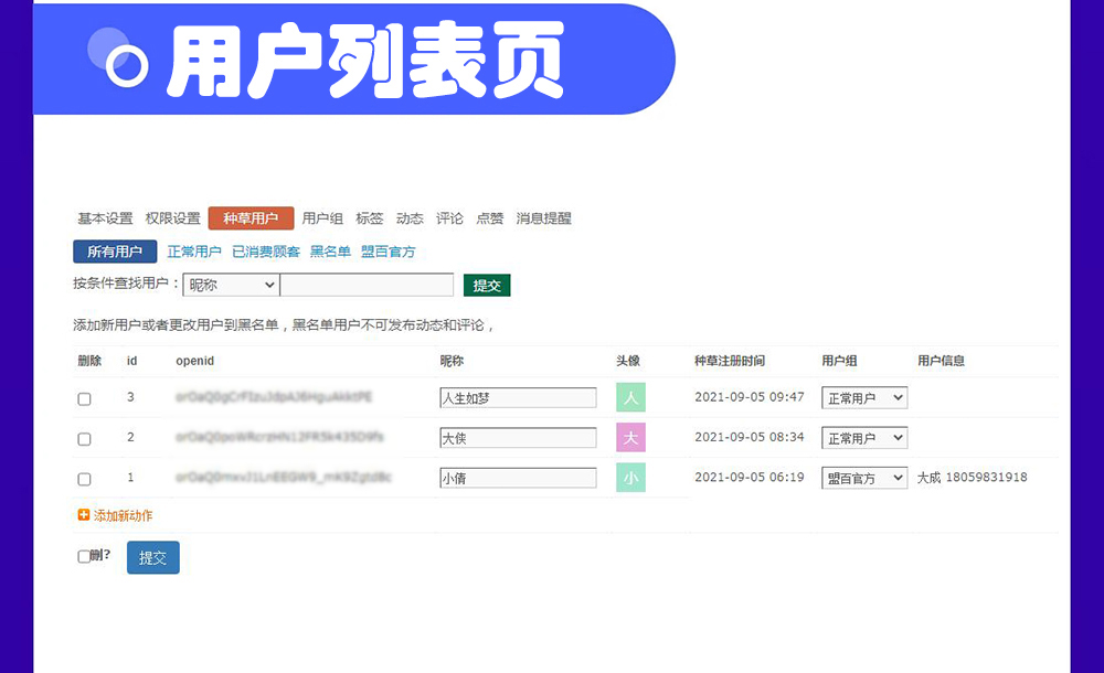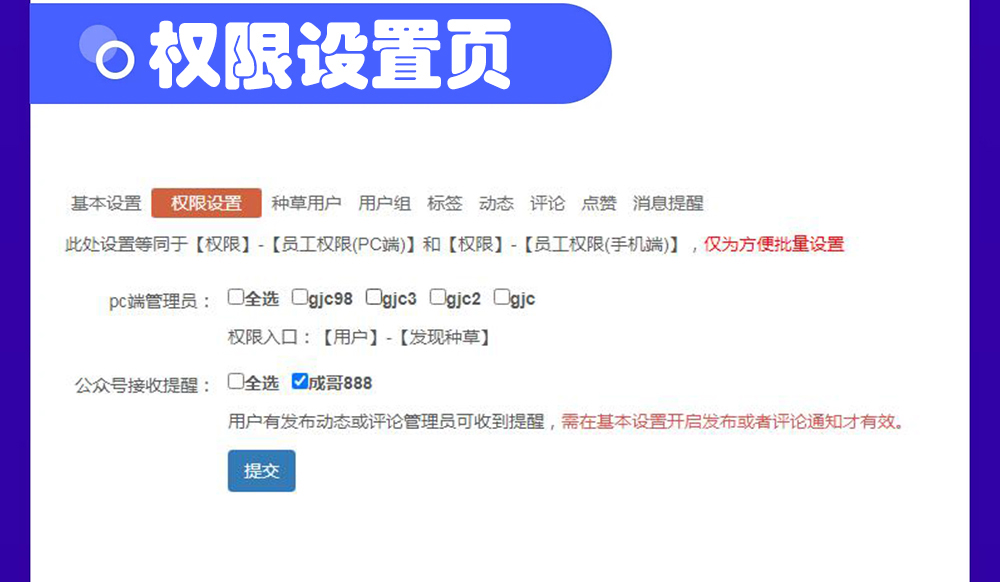 ? 我們不缺用戶,缺的是用戶互動! 不只需要用戶互動,更需要基于一個用戶的連續互動! 用戶不等于流量。 與用戶的一次互動是一個流量。一個用戶可以產生N個流量。 過去,我們應用的是“位置流量”思維。 未來,我們需要的是“用戶流量”思維。 過去,傳統零售場的價值在于自然流量,實現人找貨。 未來,超級流量場的價值在于制造流量,實現貨找人! 從品牌塑造與營銷推廣的運營實踐來看,本質上,一個流量是指品牌商與一個用戶的一次互動,即形成一次信息交互。 而一次互動,可能直接成交,也可能為后續每一次互動的成功成交,提升了概率。 通俗地說,每次互動都是一次“種草”,為后續“拔草”提高了概率。一個用戶可以產生N個流量。 營銷層面的用戶運營就是指持續的用戶互動,就是基于每一個用戶的流量制造。 除了要有用戶,更重要的是要有與用戶之間的互動。 不僅要有“用戶互動”,而且必須保證充分的“用戶互動”,才能實現信息的充分傳遞,才能應對激烈的認知戰,才能有效地促進流量的轉化,即用戶的初次消費、復購與聯購。 一個常見的情況是:與精準目標用戶有過一次互動,即產生過一次流量,但是這位用戶當時沒有產生消費,一段時間過后也沒有產生消費。那么,是不是意味著那一次互動/那一個流量沒有價值呢?回答是堅決的:不是。造成這結果的原因,大概率是針對該用戶的運營,即持續互動,出了問題。站在這個角度上看,問題不在于缺用戶,而在于缺乏跟用戶持續互動的能力。 為此,盟百網絡開發了具有社交能力的種草社區模塊,當然您也可當成別的產品名稱甚至別的用途使用它,因為它配備了語言包。 前臺體驗 功能特性 1、發布動態,可關聯門店套餐,多選標簽,上傳多圖。 2、首頁采用瀑布流的展示方式,可根據內容自動適配,界面友好,無刷新瀑布流加載瀏覽,支持按照門店數據展示和搜索功能。 3、評論支持多級回復,同時加入了經典的QQ表情塊,增加互動性。 4、動態和評論都支持點贊功能。 5、消息提示功能,評論或者點贊會在頁面對方底部【我的】提示未讀消息數。 6、用戶中心包含頁面:我的種草、我的評論、我的點贊、評論我的、點贊我的。 7、自動生成昵稱首字的用戶頭像。 8、用戶組功能,系統內置已消費顧客和黑名單用戶組,可自添加用戶組,用戶組可設置允許的發布標簽。 9、動態內容可設置三種置頂方式:全局置頂、對應標簽置頂、"所有"頁及對應標簽置頂。后臺發布動態使用編輯器(可添加圖片、鏈接等)。動態可設置跳轉鏈接到其它任意頁面。 10、PC端和手機端權限管理功能。手機端用戶發布種草或評論管理員可收到微信公眾號提醒消息。以便及時回復。 11、配置設置: 11.2、可設置開啟或關閉評論功能,可設置默認是否允許評論,不同動態可設置是否可評論。 11.6、可選顯示已消費顧客的用戶組。 本次的的其它更新: